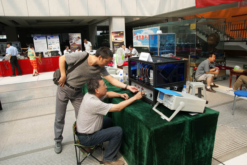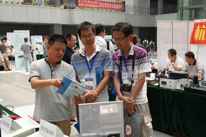 7、吉林大学刘铁成老师、韩力老师与中国科技大学的老师在一起交谈力电光综合实验仪: